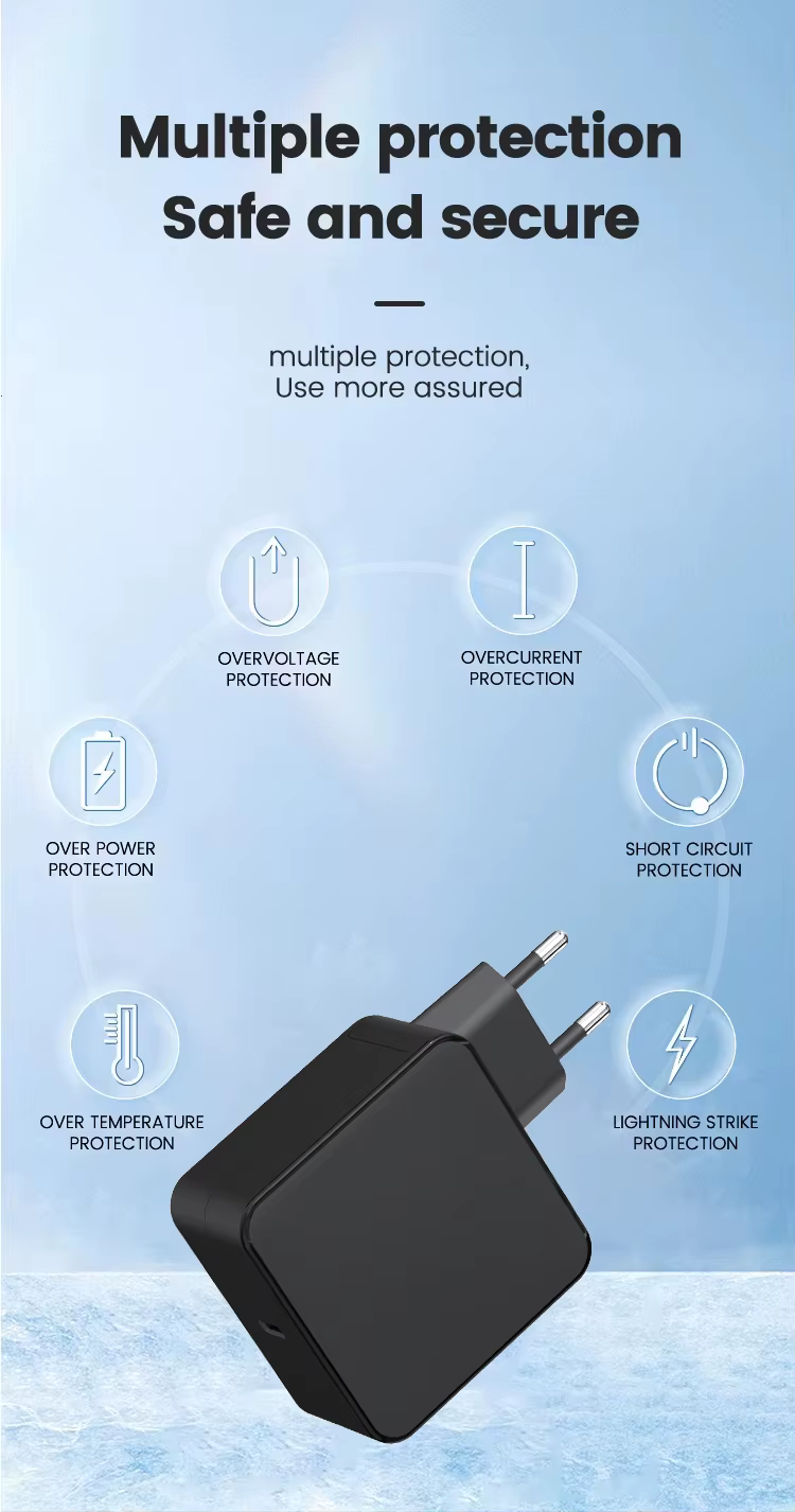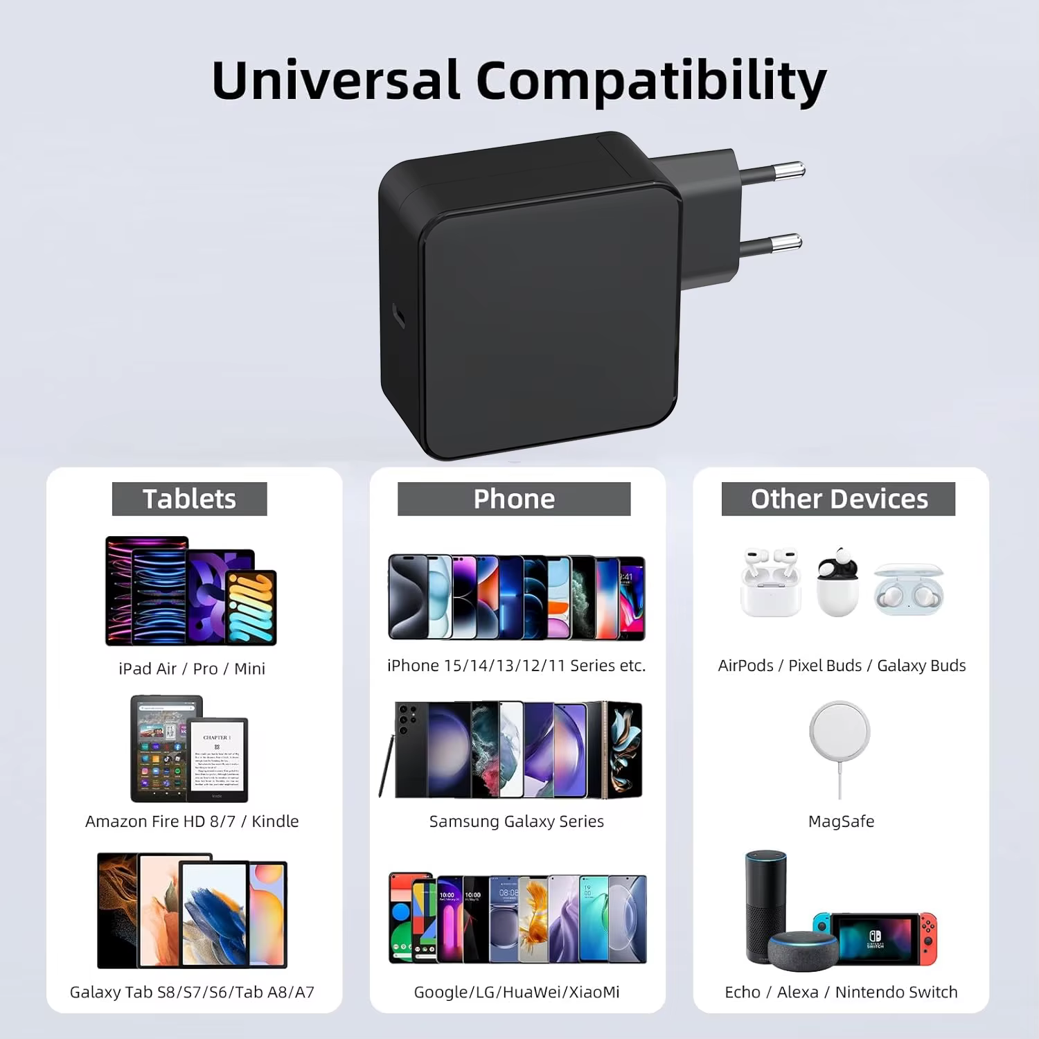 100W GaN Ultra Smart AI Monitor Charger 2USB-C 1A Port 100-240V Global Voltage Customizable OEM Type-C Adapters QC3.0 OTP 100W