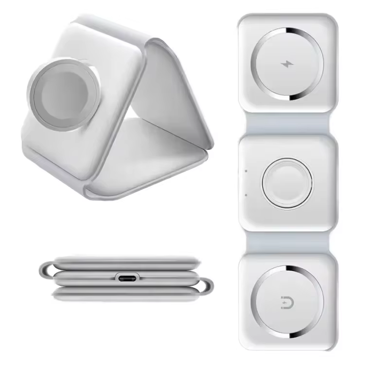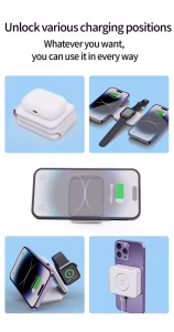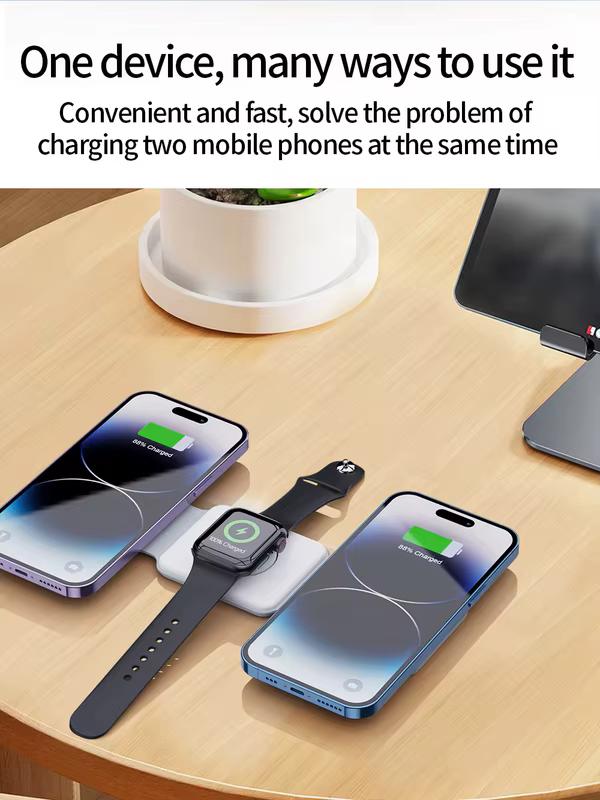 15W Fast Charging 3-in-1 Multifunction Wireless Charger with PC Holder Multiple Magnetic Devices for iPhone Watch Earphone