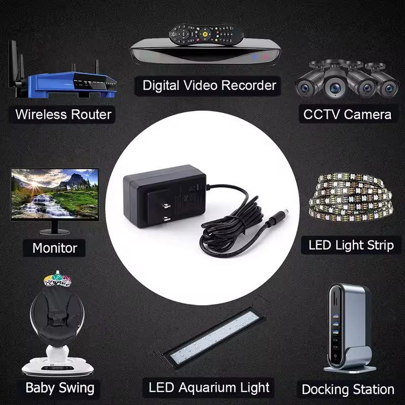 2 Pack Universal AC-DC Adapter QC2.0 PD3.1 QC3.0 Features CCTV Balun Power Supply 12V Travel Adapters UK US Plug Type Power