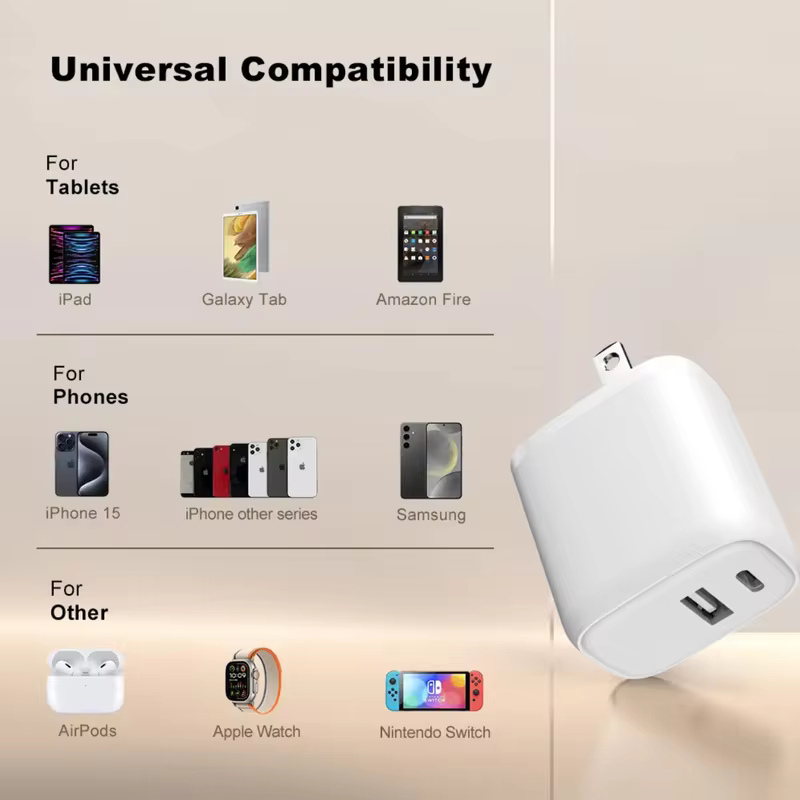 20W PD Type-C Fast Charging Wall Charger with OVP for 11-16 Pro Max
