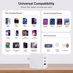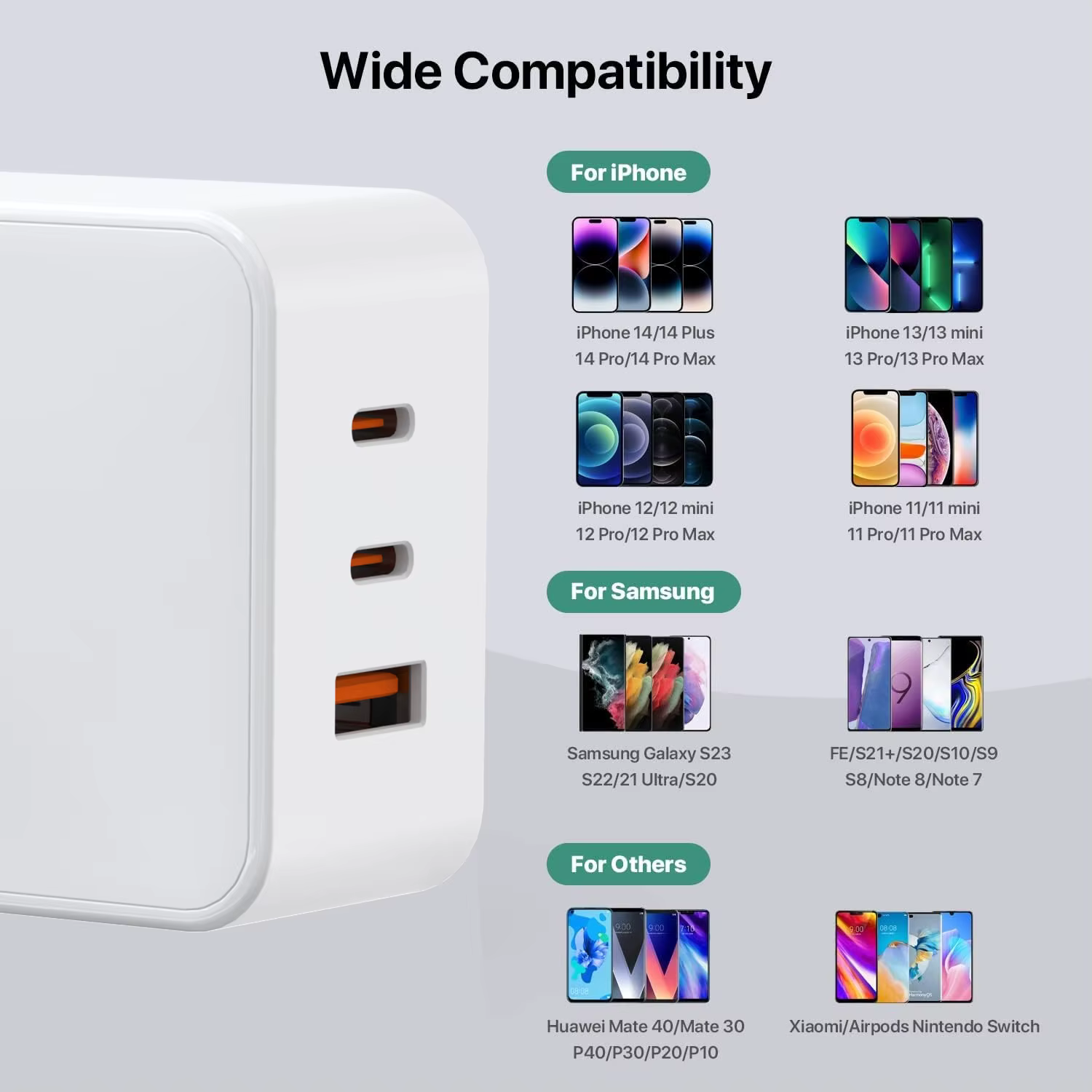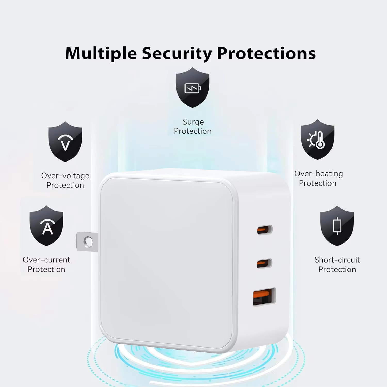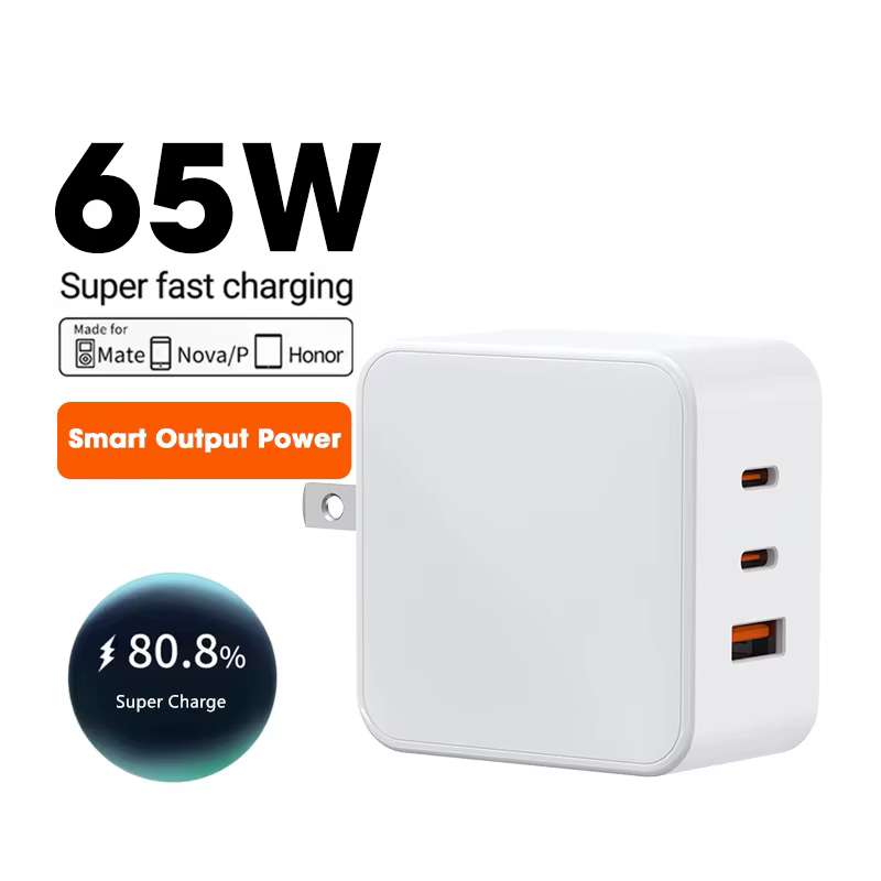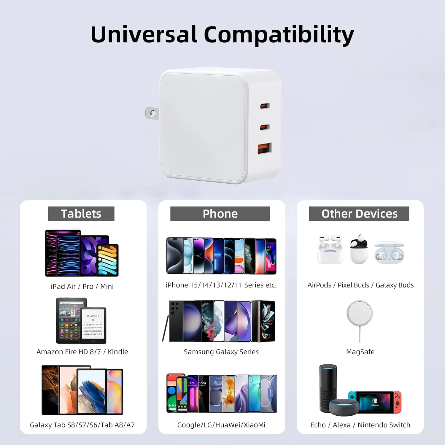 65W Fast Charger 65W 3 Ports 1 USB 2 Tpye C GAN Wall PD Universal 65 Watt Fast Laptop Charger Adapter for Macbook IPhone Tablet