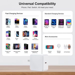 65W GaN Fast Charger PD QC2.0 AC Input US Plug OVP Protection 5V/3A-20V/3.25A Output 1Type-C Ports for Mobile Phones or PC