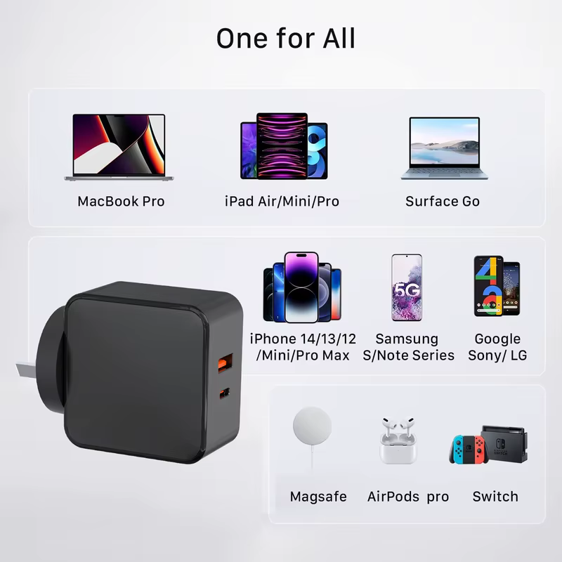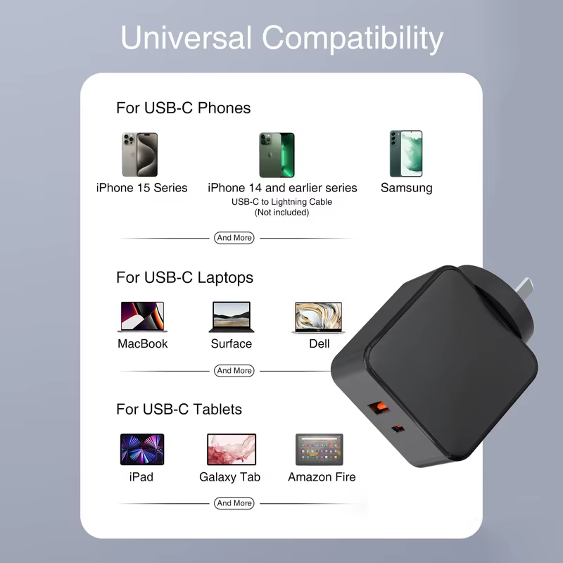 65W Universal AU Fast Type-C Laptop & Mobile Phone Charger PD3.1 QC3.0 2 Type-C Ports GaN OVP Protection