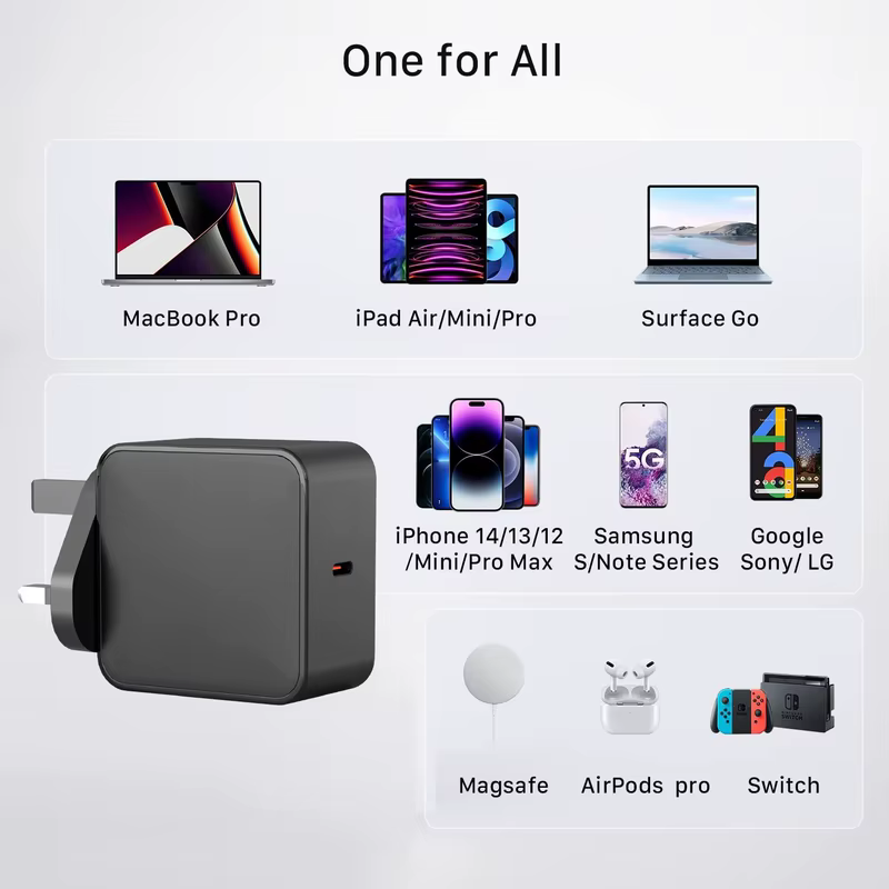 65W Universal UK Fast Type-C Laptop & Mobile Phone Charger PD3.1 QC3.0 2 Type-C Ports GaN OVP Protection