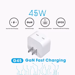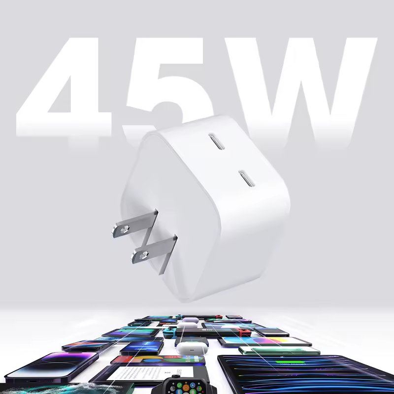 2024 PD0401 Double C Fast Charger 2C US Plug 9V2A Output 45W Power FCC & CE Certified for Mobile Phones & Tablets
