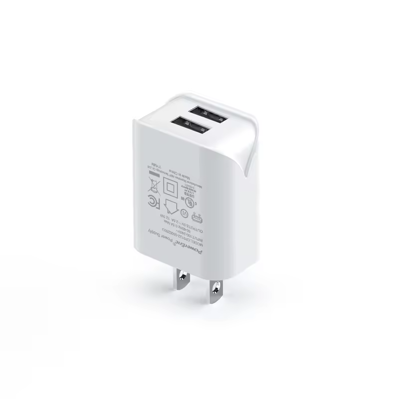 CP0124 USB Charger EU US Charging Dual Ports5V 0.5A 1A 2A 2.4A 2.5A 62368 UL CE CB Certificate AC DC Power Adapter