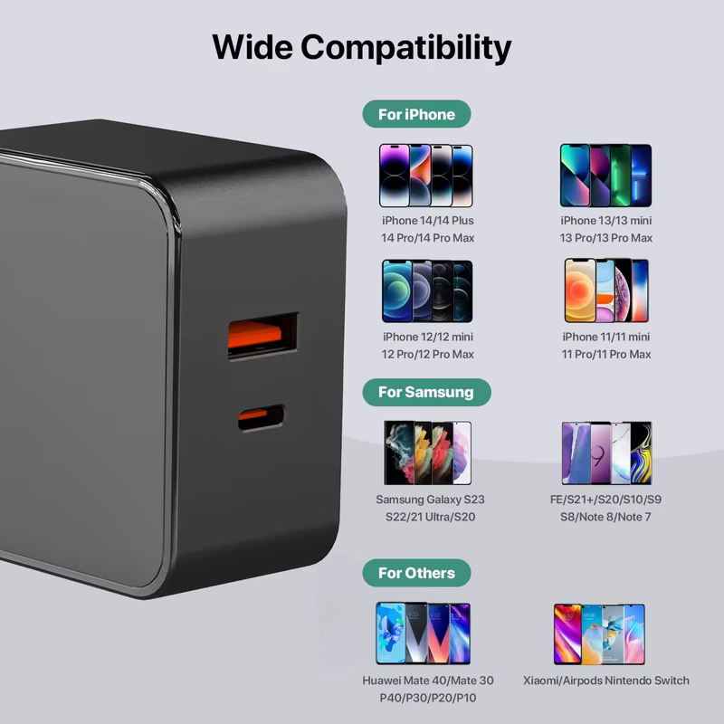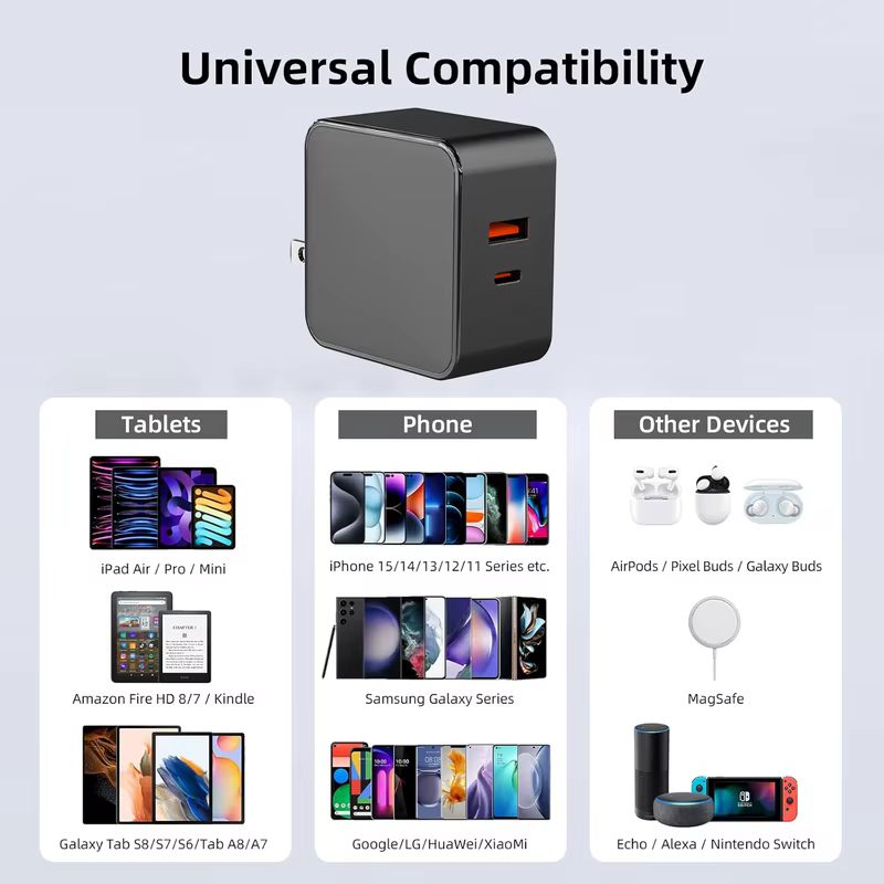 Factory New 65W USB-C PD Fast Charger 12V 24V Type C Cable US Plug for Laptop & Mobile Phone Compatible with for iPhone & for Le