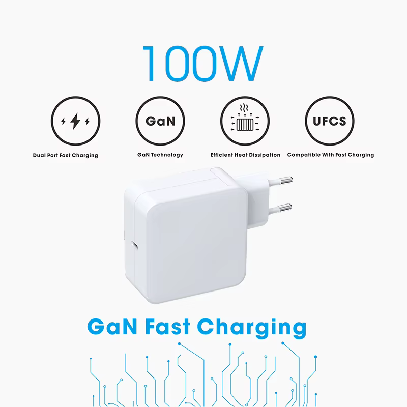 For 100W GaN PD QC3.0 Fast Charging Desktop Charger for Mobile Phone & Laptop with OTP/OVP/OCP Protection