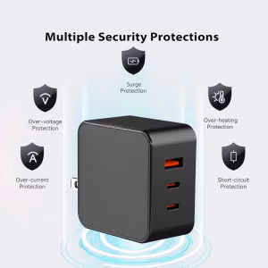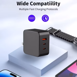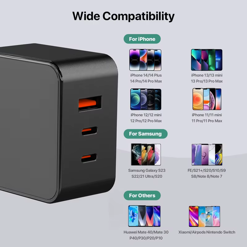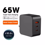 Gan 65W Tri – Port GaN Power Adapter, 2C + 1A, Fast Charging for Phones & MacBook Pro (EU/UK Plug)