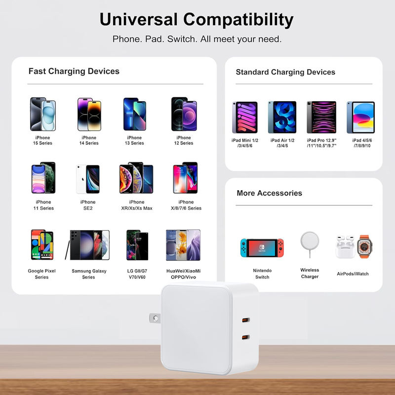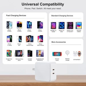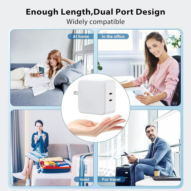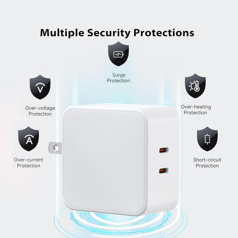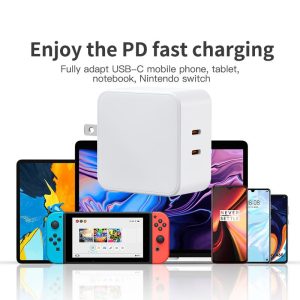 Gan 65W Tri – Port GaN Power Adapter, 2C, Fast Charging for Phones & MacBook Pro (EU/UK Plug)