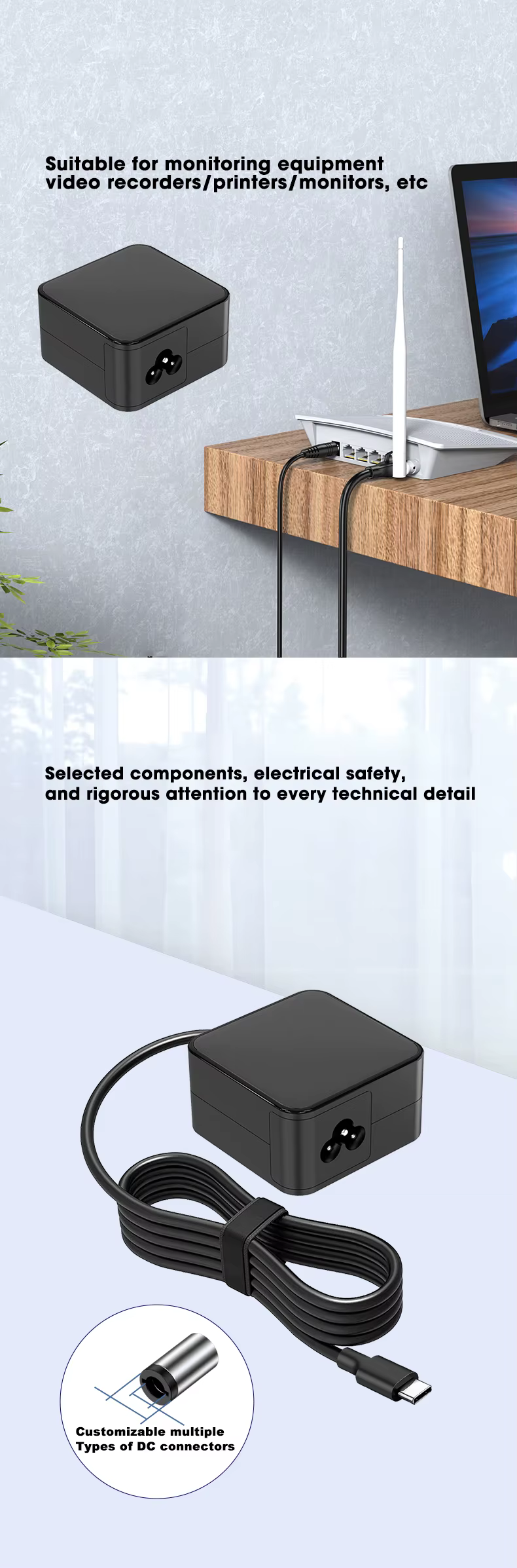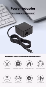 GaN Technology 65W Desktop Adapter PD Fast Charger Type-C Port Phone Charger Adapter with Certification