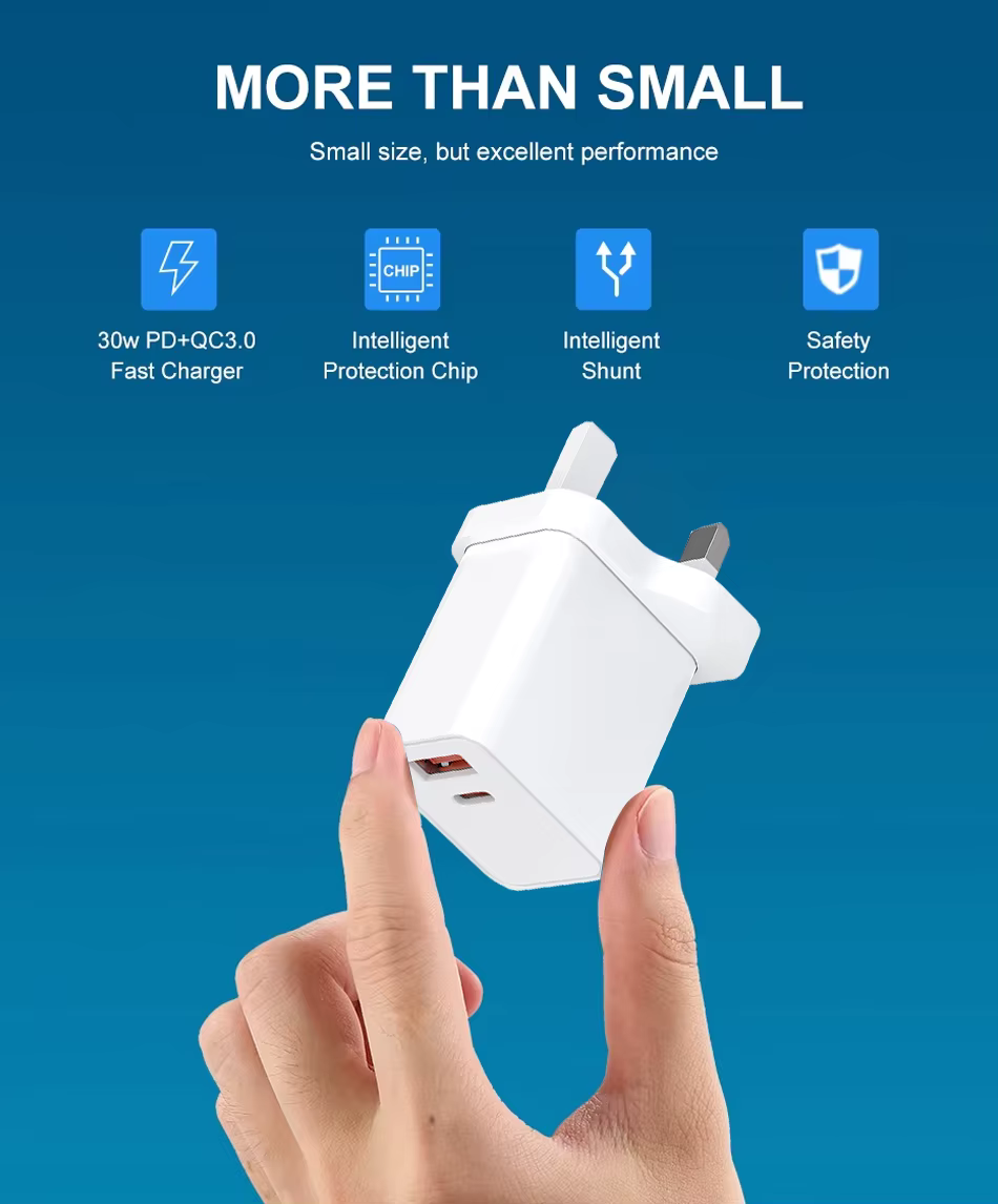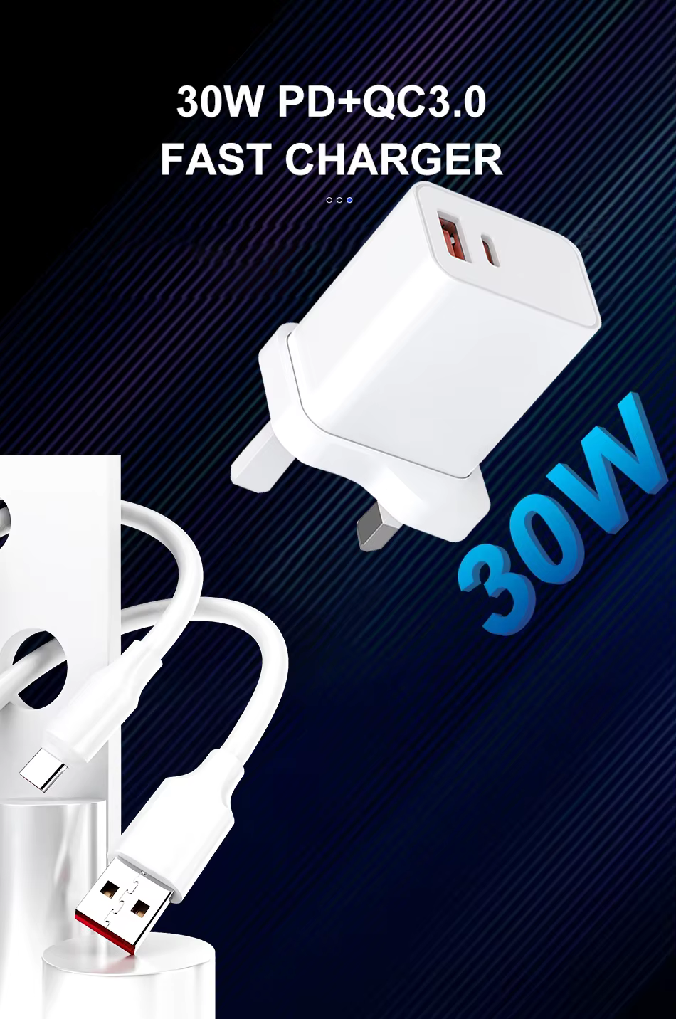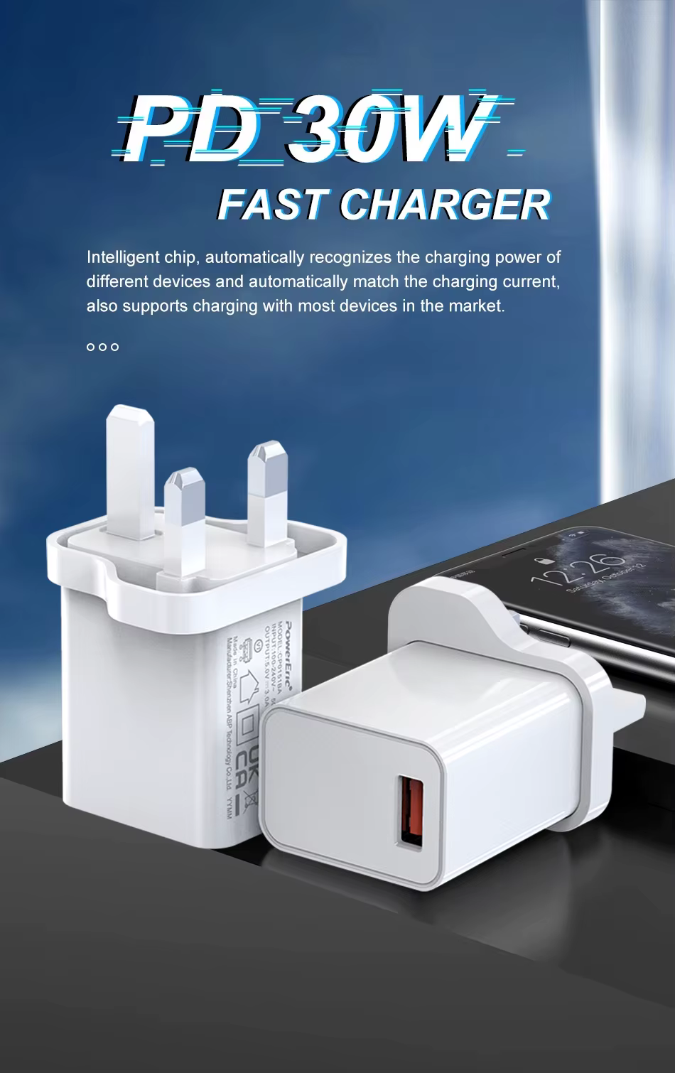 Mobile Phone Power Adapter PD 30W Charger USB Type C Fast Charging EU US UK AU Plug Wall Charger
