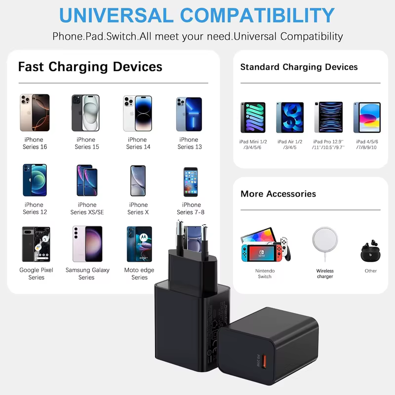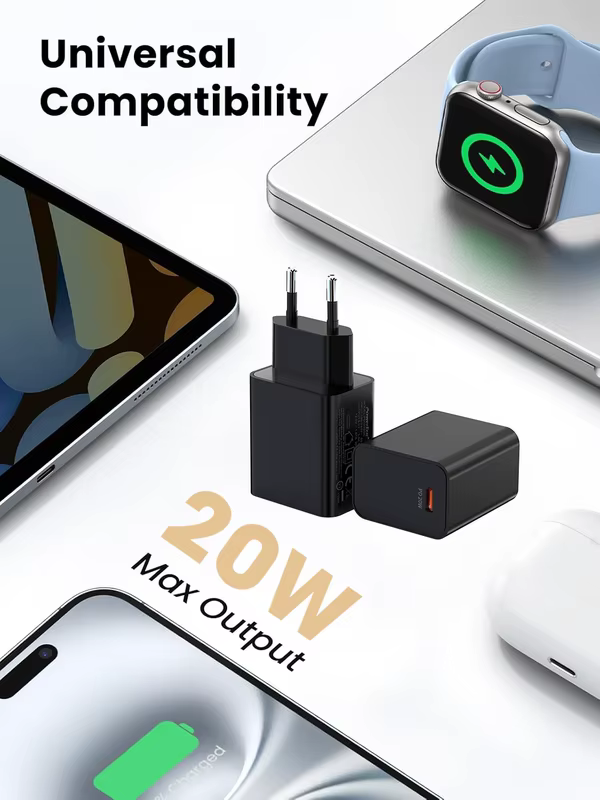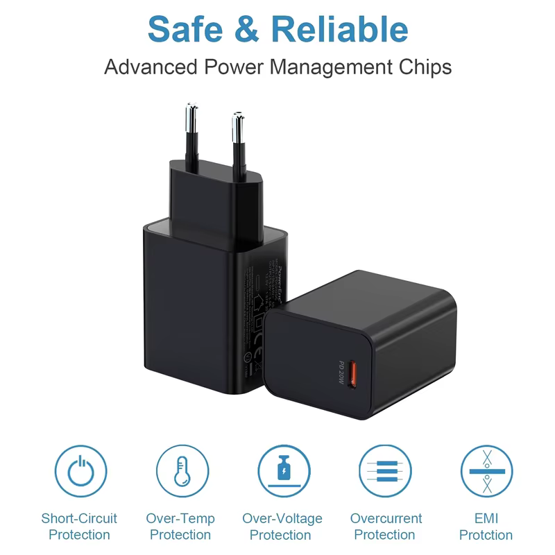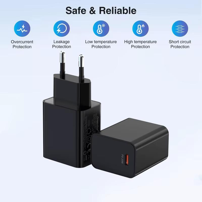 New PD 20W USB Type-C EU Plug Fast Charger 5V3A 9V2A 12V1.67A for Laptop for iPhone for Samsung and Other Electronic Products
