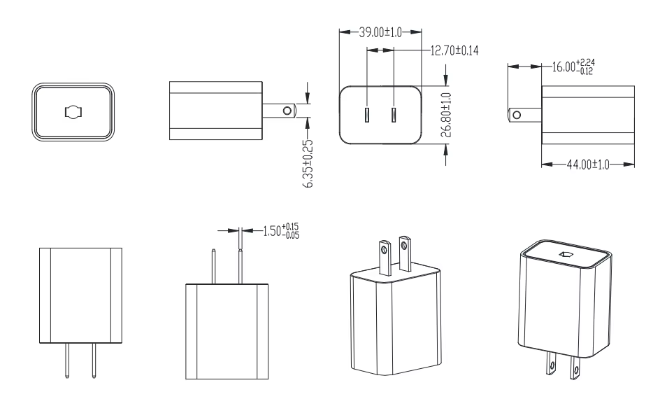 Original EU US Plug AC/DC Adapter 5VDC 3000mA Power Supply UL2464 20AWG 1M Type-C DC Cable with CE CB UL FCC ETL Certificates