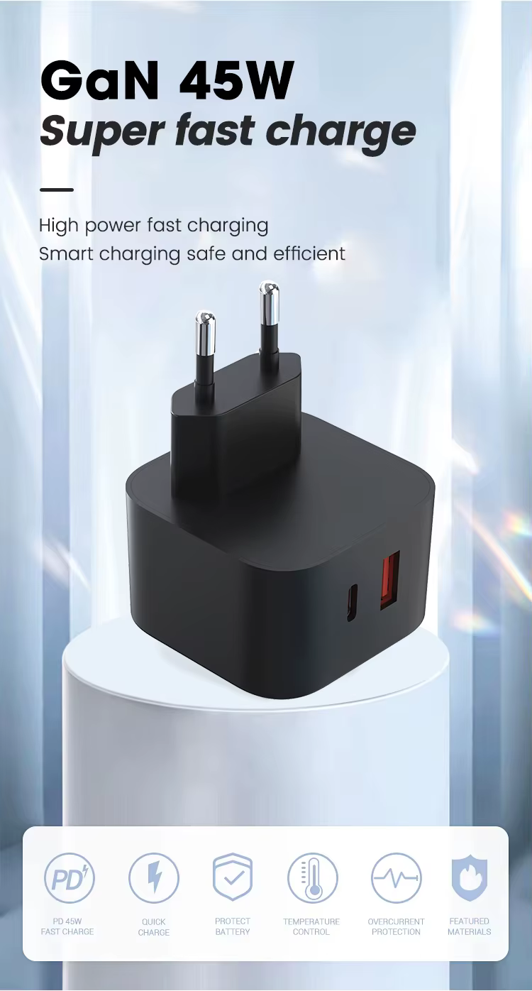 PD 45W/40W USB C+A Travel Charger Adapter PD Super Fast 45Watt Charger for Laptop Mobile Phone Earphone Phone