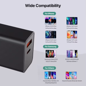 Be the first to review “PD Fast Charger QC 18W 5V/3A 9V/2A 12V/1.5A 3.0 USB-A Type-C Wall Charger OVP Protection for Android Smartphones Compatible”