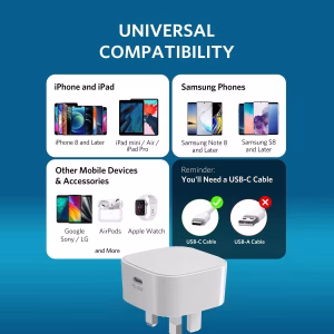 Premium UKCA Certified UK Plug PD 20W USB C Type Fast Charging Charger Head for iPhone Samsung Phone Tablet