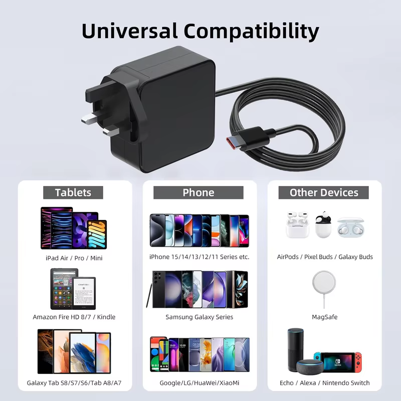Be the first to review “UKCA Plug USB C Attached Cable 100W Gan Smart Charger for Laptop 20V 1.5A/2A PD 3.0 UK Plug for Lenevo, Dell & Asus Laptop” Cancel reply