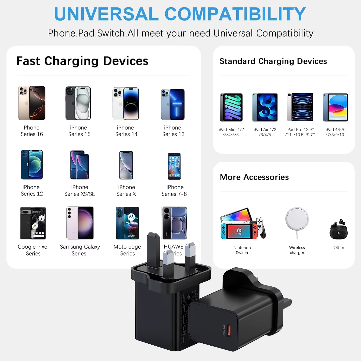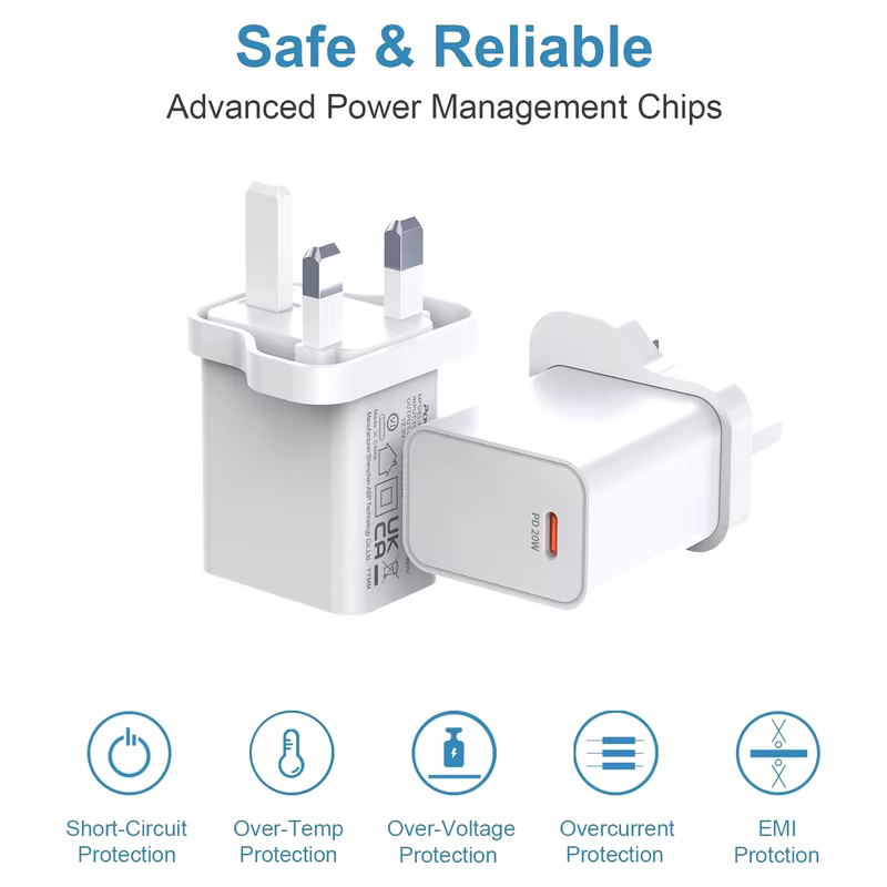 Wholesale TYPE-C Fast Phone Charger Portable Cell Phone UK Wall Charger With 20W PD with Malaysian Certification